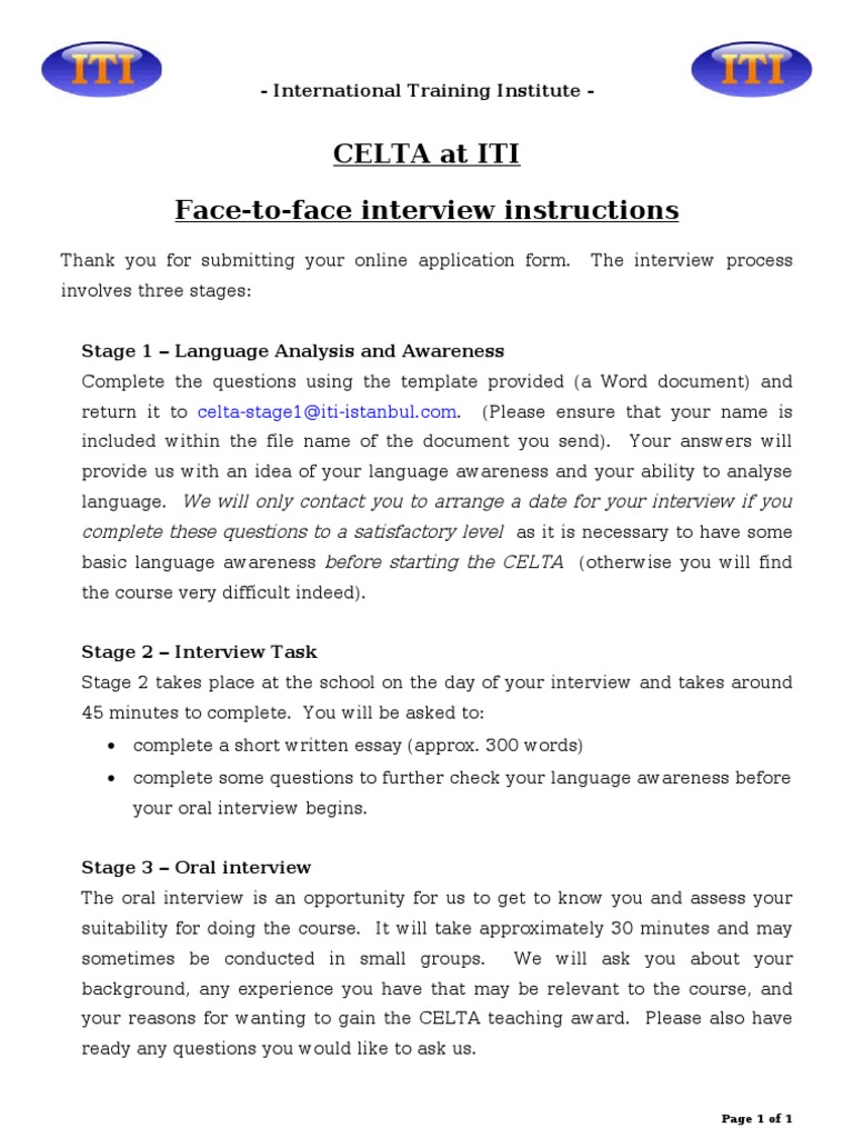 Celta F2f Interview Instructions