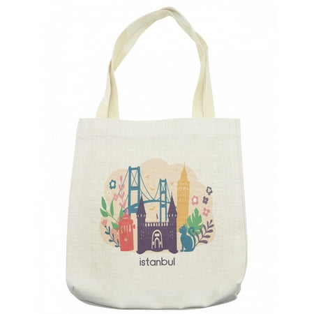 Travel Tote Bag Istanbul City Illustration With Colorful Floral And Landmarks Cloth Linen Reusable Bag For Shopping Books Beach And More 16 5 X 14 Cream By Ambesonne Walmart Com